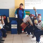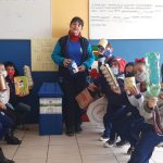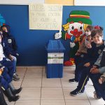 A nossa escola foi premiada com uma lixeira para depositar coisas que podem ainda ser reutilizadas, pegamos o que havia dentro e mostramos para as crianças. Essas coisas serão entregues a equipe que trabalha com material reciclável na cidade.