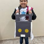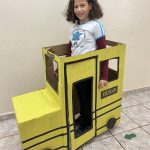 Foi solicitado aos alunos que confeccionassem veículos com papelão e materiais diversos que tivessem em casa, poderia ser carro, caminhão ou ônibus. Eles confeccionaram em casa e levaram para a escola.