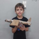 Durante uma atividade com materiais recicláveis, Hector demonstrou grande envolvimento ao criar um avião utilizando papelão, fita adesiva, cola e tesoura. A construção foi feita de forma autônoma, com planejamento e muita dedicação.