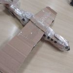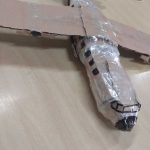 Ele mostrou-se concentrado durante toda a atividade, organizando as partes do avião com atenção e capricho. A fita adesiva foi usada para reforçar a estrutura, garantindo que o modelo tivesse firmeza e pudesse ser manuseado com segurança.