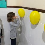 No dia 21 de Maio, os educandos da turma da Educação Infantil realizaram uma atividade sobre conscientização no Trânsito. A professora Thais e a auxiliar de sala Sabrina disponibilizaram balões amarelos na parede, e cada um dos educandos estouravam um balão. A cada balão que era estourado, estava disponível uma mensagem sobre como ter um trânsito sem riscos à vida. Os educandos estouravam o balão com um palito, e a professora Lia o que estava orientando no papel.