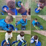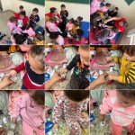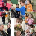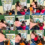Sentindo a textura dos elementos da natureza, Leitura da história João e o pé de feijão e depois plantando as sementinhas de feijão, Finalizando com cartaz coletivo pintura da árvore com o carimbo das mãos.