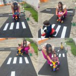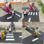 Dando sequencia agora foi proposto em um primeiro momento assistir ao vídeo “atravessar a rua” da Xuxa (https://www.youtube.com/watch?v=fcRtsmGa0h0), para que os bebês possam observar como se atravessa a rua, depois em pequenos grupos será proposto um circuito no pátio da escola onde a professora organizou o espaço simulando uma rua com faixa de pedestre, placas, para que os bebês possam vivenciar na prática como devemos se portar no transito, brincando de maneira lúdica e aprendendo através da vivencia, assim também desenvolveremos a noção espacial, concentração, atenção, deslocamento. Essa atividade será realizada em pequenos grupos, como o objetivo de permitir que as crianças desenvolvam habilidades como agilidade, coordenação motora, senso espacial, respeito as regras, respeito ao próximo.