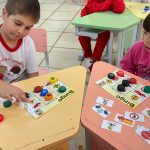 Desenvolvimento: Usando cartelas com figuras do que existe no trânsito (9 figuras por aluno em cada), tampinhas para colocar sobre cada figura conforme fosse sorteada e um saquinho com as figuras as crianças teriam que ir preenchendo suas cartelas de figuras do trânsito.