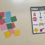 - Cartelas de bingo com imagens (sem palavras) de: semáforo, faixa de pedestre, placa de pare, bicicleta, carro, ônibus, pedestre, capacete, polícia, etc.