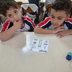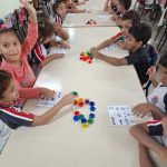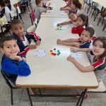 Os alunos foram colocados em duplas e cada dupla recebeu uma cartela e tampinhas de garrafa pet como marcadores. Ao passo que o jogo seguia e as figuras sorteadas a descrição e a função dos elementos das figuras foram enfatizadas, transformando o jogo em um momento de fixação de conteúdo e ampliação de vocabulário. As crianças iam marcando as imagens nas cartelas e quando completavam gritavam BINGO; as cartelas foram conferidas e o prêmio foi entregue.
