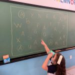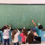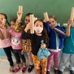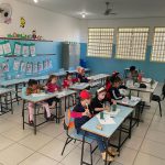 Em um dialogo na sala de aula sobre o tema Reciclagem foi pedido para os alunos da Etapa 1 D trouxessem rolos de papel higiênico para confecção de binóculos. Os alunos ficaram animados para coletar os rolos e ajudar o meio ambiente, depois que trouxeram os alunos confeccionaram seus binóculos. Em seguida foi feito um quadro na lousa com várias letras para que os alunos procurassem pelas vogais já vistas em sala de aula (A,E).