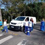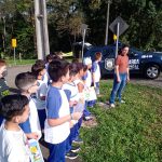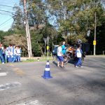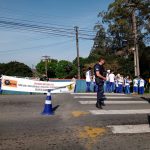Antes realizar a ação, orientamos os alunos como se portar e os riscos do pedestre diante da movimentação do tráfico rodoviário, lemos o dizer da faixa “Atenção motoristas: Não dar preferência a pedestre é infração, respeite e salve vidas”, conversamos com os alunos os deveres e direitos dos pedestres e que todo cuidado é importante.