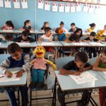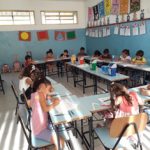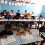 Os alunos fizeram atividades do bloco de atividades “Brincar e aprender com a turminha da floresta.” Aprenderam os cuidados que devemos ter e valorizar a vida em sua diversidade e também a preservação do meio ambiente.