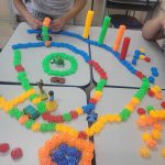 Desenvolvimento: Os alunos montaram, com os blocos, situações que envolvam regras de trânsito.