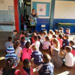A Historia foi contada em uma roda de conversa no pátio envolvendo os maternais II e Jardim I no período da tarde, depois de contada foram feitas algumas questões de entendimento, onde os alunos pediram que recontasse a historia novamente.