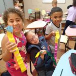 Utilizando papéis coloridos que seriam descartados, os alunos confeccionaram representações criativas do personagem, unindo arte, imaginação e consciência ambiental.