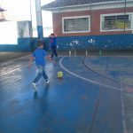 Essa atividades batizamos de bolichebol. Foi criada na aula de educação física, com garrafas Pets, onde os alunos ficavam numa certa distancia, e chutavam bola nas garrafas, quem derrubasse mais, seria o vencedor. Atividade feita com os 1° anos. Material reciclável.