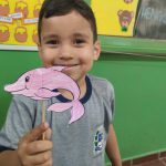 DURANTE O PROJETO FOLCLÓRICO OS ALUNOS CONFECCIONARAM O BOTO-COR-DE-ROSA ARTICULADO, FEITO COM PALITO DE CHURRASCO, E PRATO DE PAPELÃO, MATERIAIS RECICLADOS QUE AUXILIARAM O DESENVOLVIMENTO DA COORDENAÇÃO MOTORA E A NOÇÃO ESPACIAL.