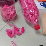 Utilizando garrafas PET, tampinhas e papel rosa, as crianças criaram em conjunto lindos botos, unindo criatividade, cultura e sustentabilidade.