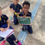 4. Marque no chão a linha de onde as crianças deverão arremessar.