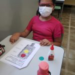 DEPOIS DA PARTE PRÁTICA FOI HORA DE PASSAR O CONHECIMENTO PARA A ATIVIDADE NA FOLHA E PINTAR CONFORME O INDICADO E EXPLICADO PELAS PROFESSORAS.