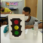 POR EXEMPLO: ATENÇÃO – O ALUNO QUE ESTAVA COM O SEMÁFORO COLOCAVA A LANTERNA NA LUZ QUE SIGNIFICA A PALAVRA ATENÇÃO E ASSIM POR DIANTE ATÉ TODOS BRINCAREM.