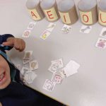 Reconhecer e relacionar figuras às vogais que iniciam cada uma delas, utilizando rolos de papel higiênico reciclados, promovendo a consciência sobre a importância da reciclagem e desenvolvendo a percepção fonêmica e a associação entre som e grafia de forma lúdica e interativa.