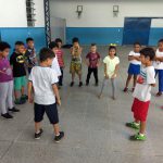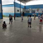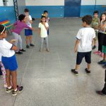Os Alunos do 2° ano A, Escola EMEB Professora Conceição Collaço de Jacupiranga, vivenciaram um momento de diversão através da brincadeira educativa (amarelinha africana) com o intuito de trabalhar o domínio de lateralidade (esquerda/direita) onde o uso no cotidiano se faz necessário e importantíssimo como pedestre. Ao comando, muita concentração para não errar e usar o espaço dos colegas;