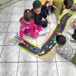Inicialmente foi realizado uma roda de conversa sobre o trânsito, a professora solicitou que as crianças trouxesse\m carrinhos pequenos. Após a professora mostrou o semáforo explicou significado das cores e posteriormente fez uma pequena maquete juntamente com as crianças, após concluir, chamou as crianças e cada uma pegou seu carrinho e brincaram utilizando a maquete, o carrinhos e o semáforo, respeitando a faixa de pedestre que fazia parte da maquete. O resultado foi crianças demonstrando que serão adultos que respeitam o trânsito.