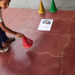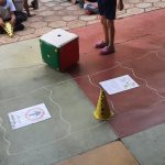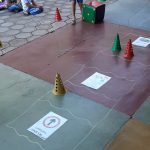 Jogo de tabuleiro gigante com regras do trânsito. Com participação ativa , onde as crianças puderam relembrar e aprender novas regras fixando na memória a importância de sua colaboração e participação no trânsito.