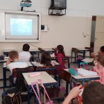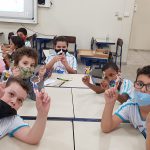 Em seguida, na lousa digital, conheceram os personagens da Turminha da Floresta , e as características individuais de cada um. Então, brincaram com os dedoches dos personagens, inventando um teatro onde cada personagem deveria proteger as florestas do desmatamento.