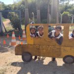 Hoje foi dia de brincar de motorista. A partir de um veículo, de compensado, as crianças resolveram brincar de motorista e passageiro, também tinha cobrador. Segundo os alunos, as passagens estão bem caras.