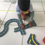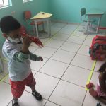 Nessa atividade as professoras trouxeram alguns objetos para sala de sala de aula como pista, automóveis, barquinho de papel, trilho de trem, trem, avião, helicóptero entre outros. As crianças brincaram livremente depois de identificarem os meios transporte e forma de locomoção de cada um.