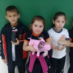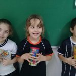 E como tarefa cada aluno trouxe de casa um pouquinho de material reciclado.