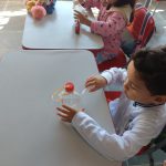 Primeiramente fiz uma roda de conversa com os alunos sobre a importância de reutilizar materiais recicláveis. Após a roda de conversa pedi para que trouxessem de casa uma garrafa pet para realizar a atividade de construção do brinquedo bilboquê.