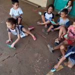 Durante a atividade, as crianças demonstraram interesse, concentração e entusiasmo, valorizando o próprio trabalho e o dos colegas. O momento foi de grande envolvimento, permitindo o desenvolvimento da coordenação motora fina, da criatividade e da consciência ambiental, ao compreenderem que é possível reaproveitar materiais para criar novas brincadeiras.