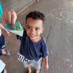 Em continuidade às atividades sobre reciclagem e reaproveitamento de materiais, as crianças participaram de uma proposta prática e criativa: a confecção de um brinquedo reciclável. Cada aluno decorou uma folha de papel reutilizada, explorando cores, formas e texturas com lápis de cor e giz de cera. Em seguida, com a ajuda da professora, realizaram a dobradura de um barquinho, transformando o papel decorado em um brinquedo.