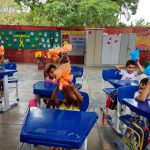 Objetivo: Introduzir brinquedos diferentes dos brinquedos que os alunos estão acostumados a brincar, além de conhecer melhor os brinquedos da Região Nordeste. Podendo confeccionar o próprio brinquedo com materiais reutilizados, que foram o jornal e o Tnt que já havia sido usado na escola.