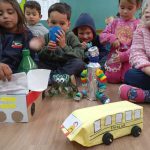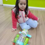 Nessa atividade com o objetivo de viabilizar a importância de reciclar e reutilizar materiais, mostrando como os itens descartados podem ser transformados em algo útil e divertido. Cada criança junto com sua família criou um brinquedo com materiais recicláveis, onde  criança  apresentou o brinquedo reciclável, faz um relato da experiência de criar o brinquedo com sua família, após brincar com os brinquedos.