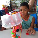 Eles (as) coletaram os lixos, separaram nos locais corretos de coleta e depois separaram os que poderiam reaproveitar para confeccionar seus próprios brinquedos.