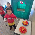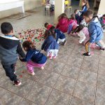 A dinâmica consistiu em espalhar tampinhas plásticas de diversas cores no pátio da escola. A professora, de forma alternada, dizia uma cor em voz alta, e as crianças corriam para procurar e recolher as tampinhas correspondentes à cor mencionada. A cada rodada, uma nova cor era anunciada, desafiando os pequenos a manterem a atenção e a agilidade. Ao final da atividade, a turma que conseguisse juntar o maior número de tampinhas da cor correta foi declarada vencedora.