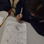Os alunos receberam 21 palavras que se referem ao trânsito, no banco de palavras. Então teriam que descobrir onde cada palavra se encaixaria na cruzadinha. As palavras foram relacionadas com cada situação, para que os alunos entendessem a importância do Código de trânsito Brasileiro.