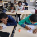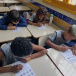 Em seguida, propôs ao alunos uma atividade de caça palavras, com o objetivo de identificar a educação para o trânsito como fator de segurança pessoal e coletiva