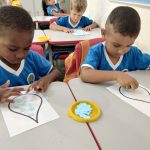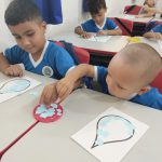 Construção coletiva do painel “Cada gota conta…economize água!”.