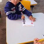 Nesta aula aproveitei para reforçar as placas trabalhadas na atividade anterior, e logo após associaram a placa normal, a sua sombra, observando assim e ligando a placa correspondente.