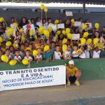 Os alunos da Ed. Infantil ao 4º Ano juntamente com as professoras fizeram uma caminhada em torno da escola, com cartazes, faixas, balões e apitos chamando a atenção de toda comunidade sobre: Maio Amarelo, no trânsito o sentido é a vida, conscientizando sobre o respeito, solidariedade e gentileza no trânsito. Foi um momento de muito envolvimento dos alunos com a comunidade escolar.