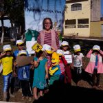 Objetivo: andamos até a praça existente perto da escola para que saibam respeitar a acessibilidade da calçada, como atravessar a rua de maneira segura.