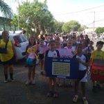 Os alunos, professores e gestores da Escola Leonaldo Zornoff fizeram uma caminhada em prol da Campanha Maio Amarelo. Os alunos fizeram cartazes, carrinhos e placas de trânsito e acompanhados pelos professores caminharam nos arredores da escola para mostrar a comunidade a importância do respeito com as regras de trânsito e com a vida, juntos aos alunos os fantoches da turminha do Zé Quest também participaram da caminhada.
