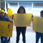 Para conscientizar atingindo um maior número de pessoas, os alunos saíram para caminhar em função de passar a informação para a comunidade da importância de se respeitar as leis de trânsito.