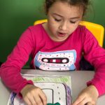 A professora pensando em trânsito seguro trabalhou com os alunos o contorno da letra do nome, sugerindo que fizessem o contorno correto da letra do nome, orientou sobre a importância de seguir caminhos seguros ao andar nas ruas.