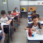 A turma do 3º ano B realizou a leitura da revistinha e discutiram o tema podendo refletir sobre o papel dos motoristas, as regras das rodovias, os equipamentos de segurança necessários aos motoristas e as normas para evitar os acidentes.