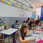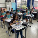 A turma do 5º ano A e 5º ano B realizaram a leitura da revistinha e discutiram o tema podendo refletir sobre o papel dos motoristas, as regras das rodovias, os equipamentos de segurança necessários aos motoristas e as normas para evitar os acidentes.