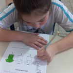 Os alunos foram convidados a realizar a atividade analisando os padrões de camisetas propostas e identificarem quem delas não obedecia ao mesmo padrão das demais.