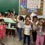 As crianças visitaram as outras salas com o objetivo de divulgar o tema da Campanha, promovendo a conscientização pela vida.